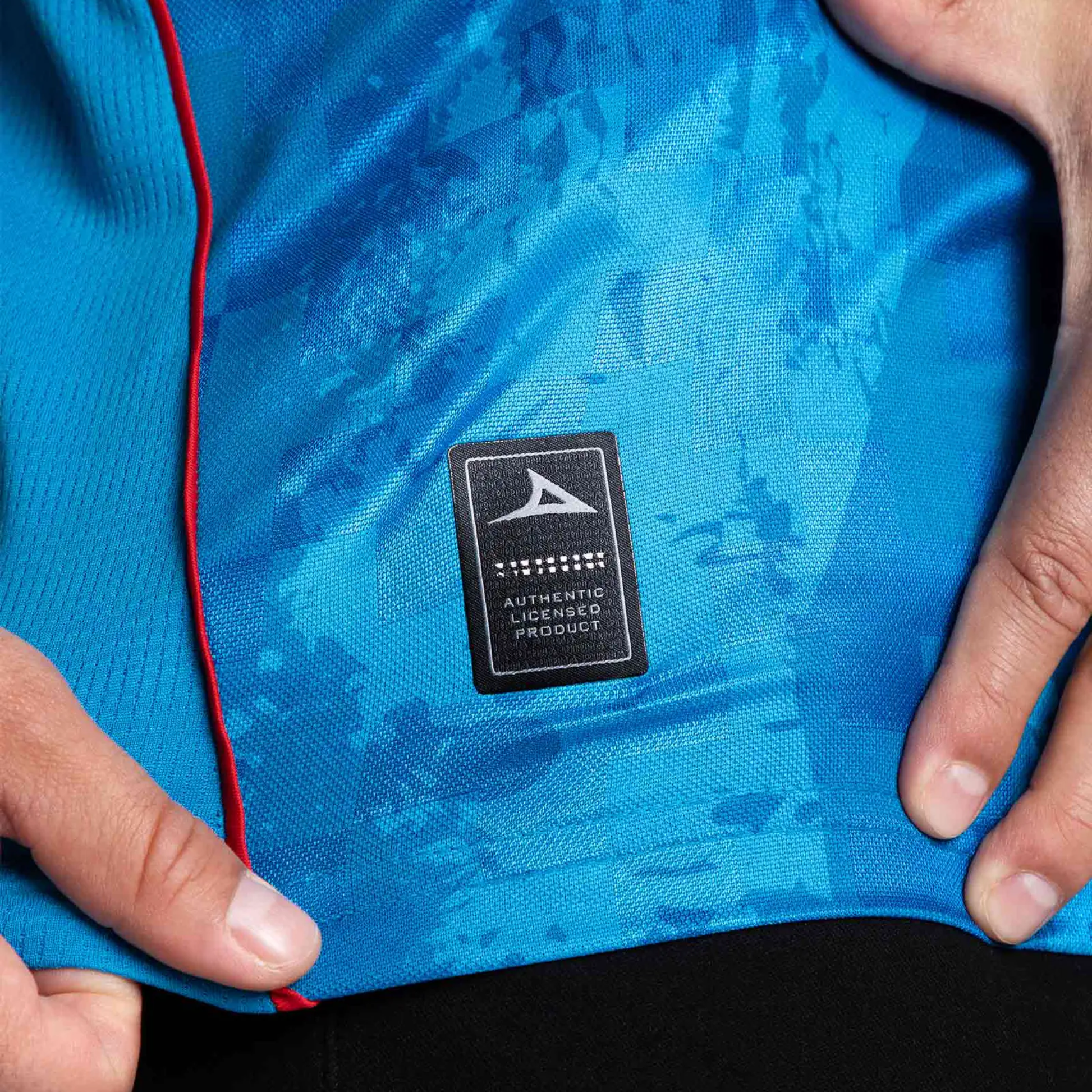El diseño cuenta con una tela personalizada en proceso Jacquard con un grabado de cruces entrelazadas. En el cual destacan el escudo de la institución y logotipo de PIRMA, fabricados con poliuretano y colocados con tecnología termo adherible, además de un mesh hecho de tejidos especiales para favorecer la transpiración. Incluye también la etiqueta de autenticidad de producto, en un acabado brush.